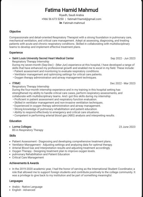 I am Respiratory Therapist. Graduated from Philippines since 2023. Live in Riyadh, able to work anywhere immediately