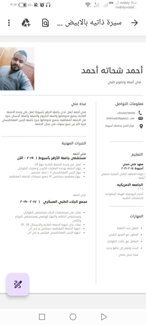 فني أشعة مصري الجنسية ذو خبرة 10 سنوات أقوم بعمل جميع الأشعة المقطعيه والعاديه وأشعة الوجه والفكين واعمل علي جميع أنظمة c arm بالعمليات مصنف خبرة بجميع أنواع الأشعة حاصل على الداتا فلو وبرومترك جاهز لنقل كفالة في أي مكان في المملكة