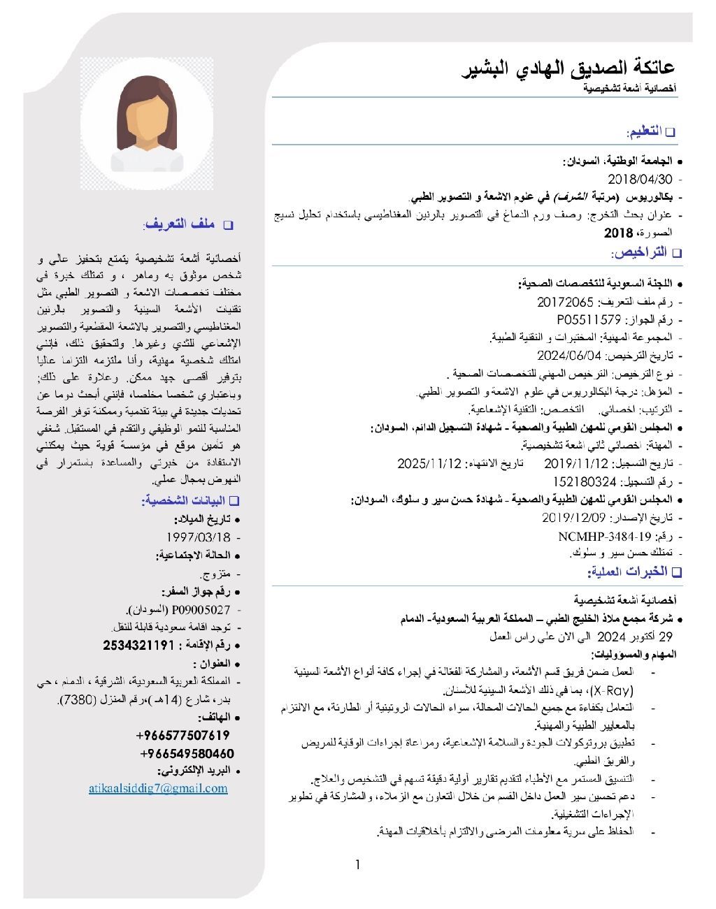 Resident Radiology Specialist based in Dammam, with 4 years of experience in X ray, panoramic imaging, and ICU radiology. Holding a valid and transferable residence permit. Seeking a Radiology Specialist position in the Eastern Province Dammam, Al Khobar, Qatif, or Saihat