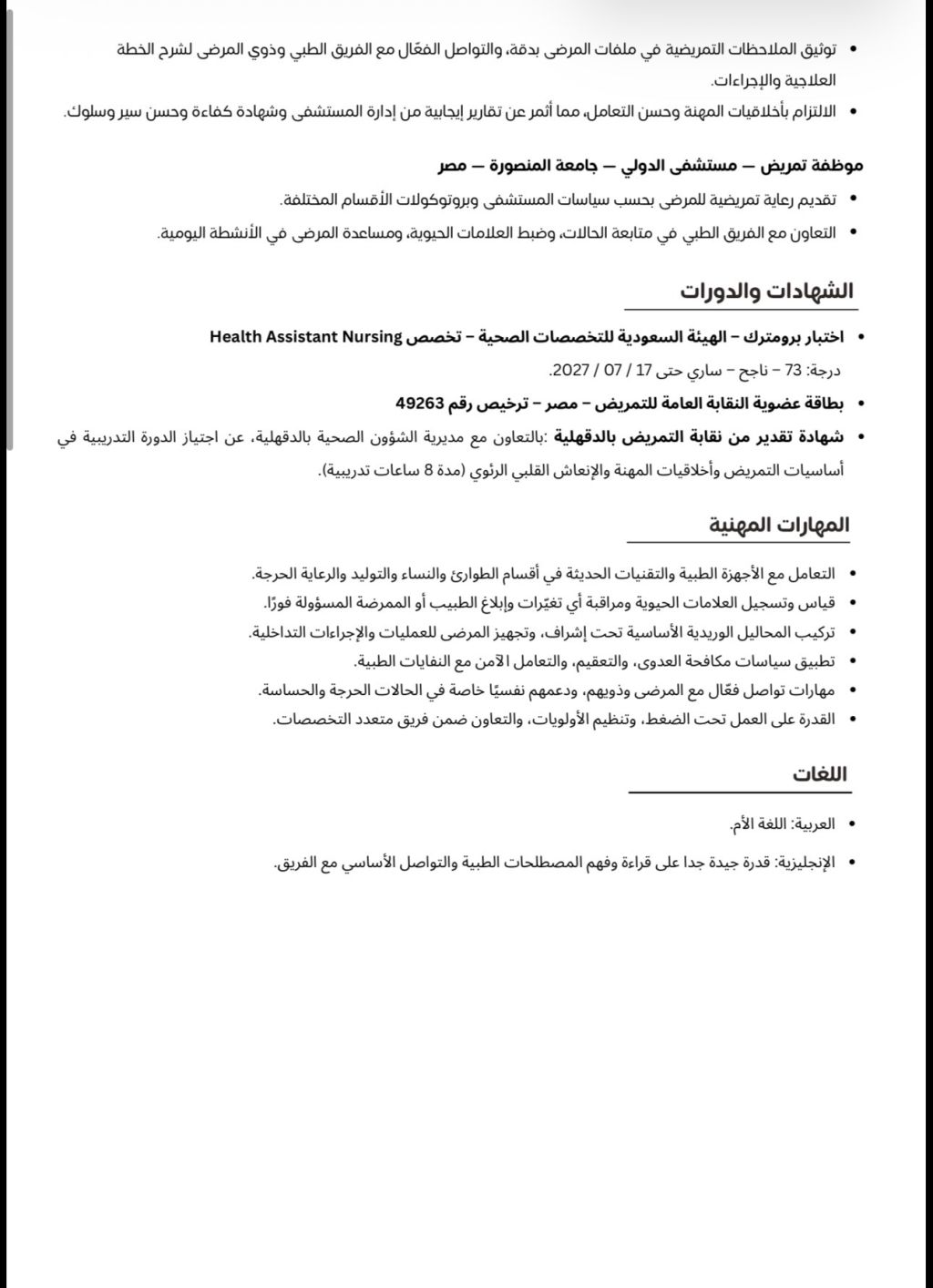 ممرضة طوارئ ورعاية حرجة ومعي الترخيص ومتاح نقل كفالة مقيمة في الخبر
