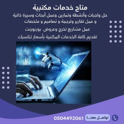 متاح حل واجبات وعمل أبحاث وسيرة ذاتية وتصميمات وملخصات ومشاريع وتقارير وترجمة بأسعار تنافسية للتواصل