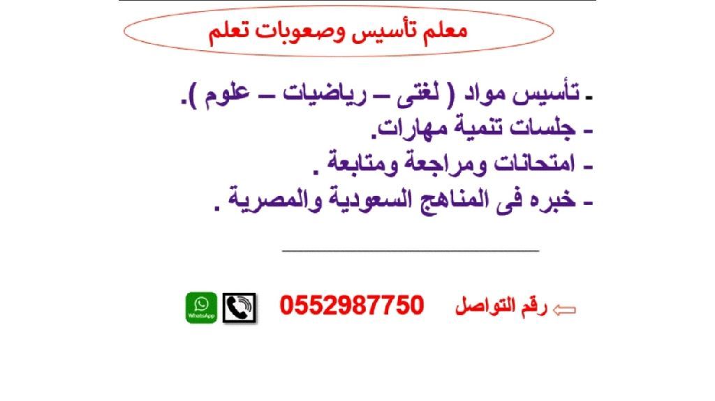Foundation and Learning Difficulties Teacher (Arabic Language - Math - Science) Skills Development Sessions - Exams, Review, and Follow - up - Experience with Saudi and Egyptian Curricula