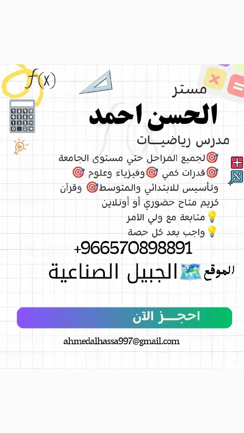مدرس قدرات ورياضيات وتحصيلي لجميع المراحل