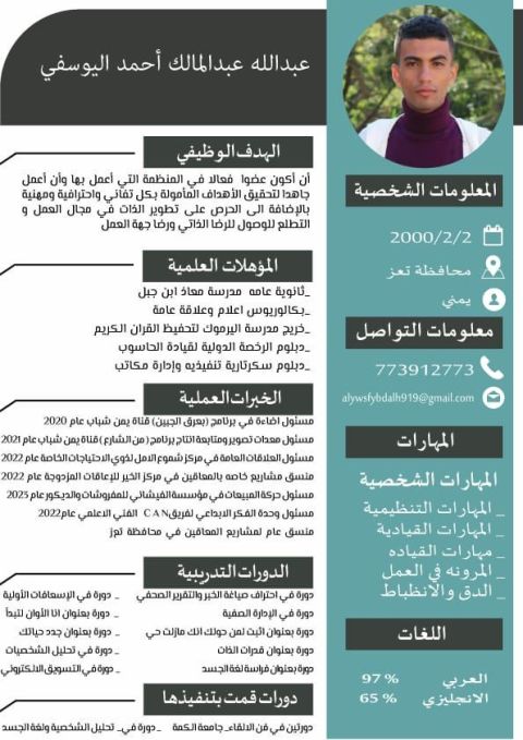 شاب يمني يبحث عن عمل في أي مجال شهادة بكلريوس شهادة في مجال الاعلام وشهادة في مجال التسويق والمحاسبه العمر 24 سنة قابل لنقل