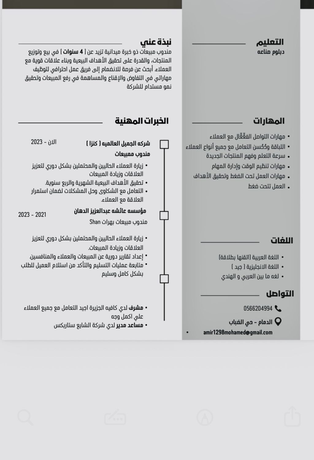 I am looking for a job as a food sales representative in Dammam or Al Khobar with 4 years of experience in the same field