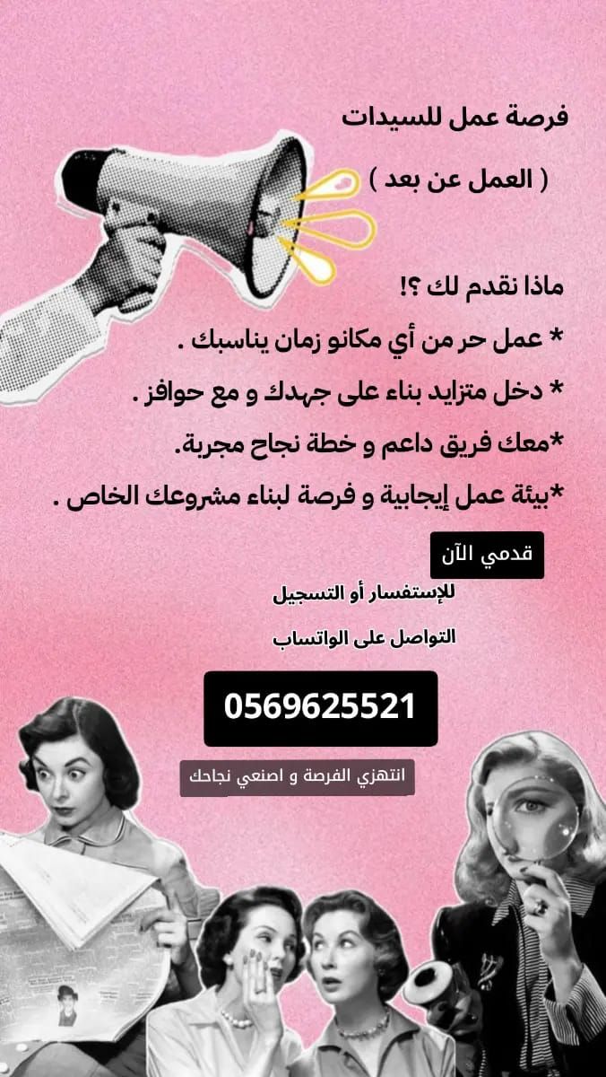 فرصة عمل للسيدات السعوديات الطموحات، العمل من المنزل، هل ترغبين في أن تكوني رائدة أعمال ناجحة لشركة عناية عالمية أمريكية وتبني مشروعك من المنزل. انضمي الآن الى فريقنا في مدينة الدمام حي الشاطئ والمسمى الوظيفي مسوقة الكترونية ورائدة أعمال عن بعد، لا تحتاج خبرة وستكون تدريباتك مع فريق متخصص وطموح. دخلك الشهري حسب مجهودك مع العمولات وحوافز. هذا العمل للسيدات السعوديات فقط التواصل