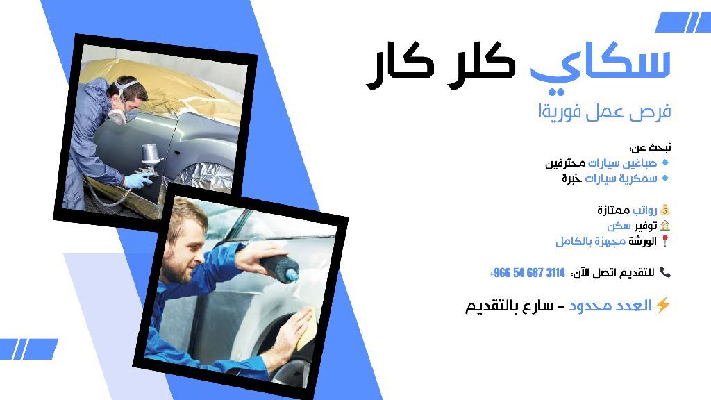 تعلن شركة سكاي كلر كار عن توفر وظائف شاغرة صباغين سيارات سمكرية سيارات المميزات رواتب ممتازة تحدد حسب الخبرة توفير سكن بيئة عمل مستقرة للتقديم يرجى الاتصال مباشرة على الرقم يرجى الجدية في التواصل