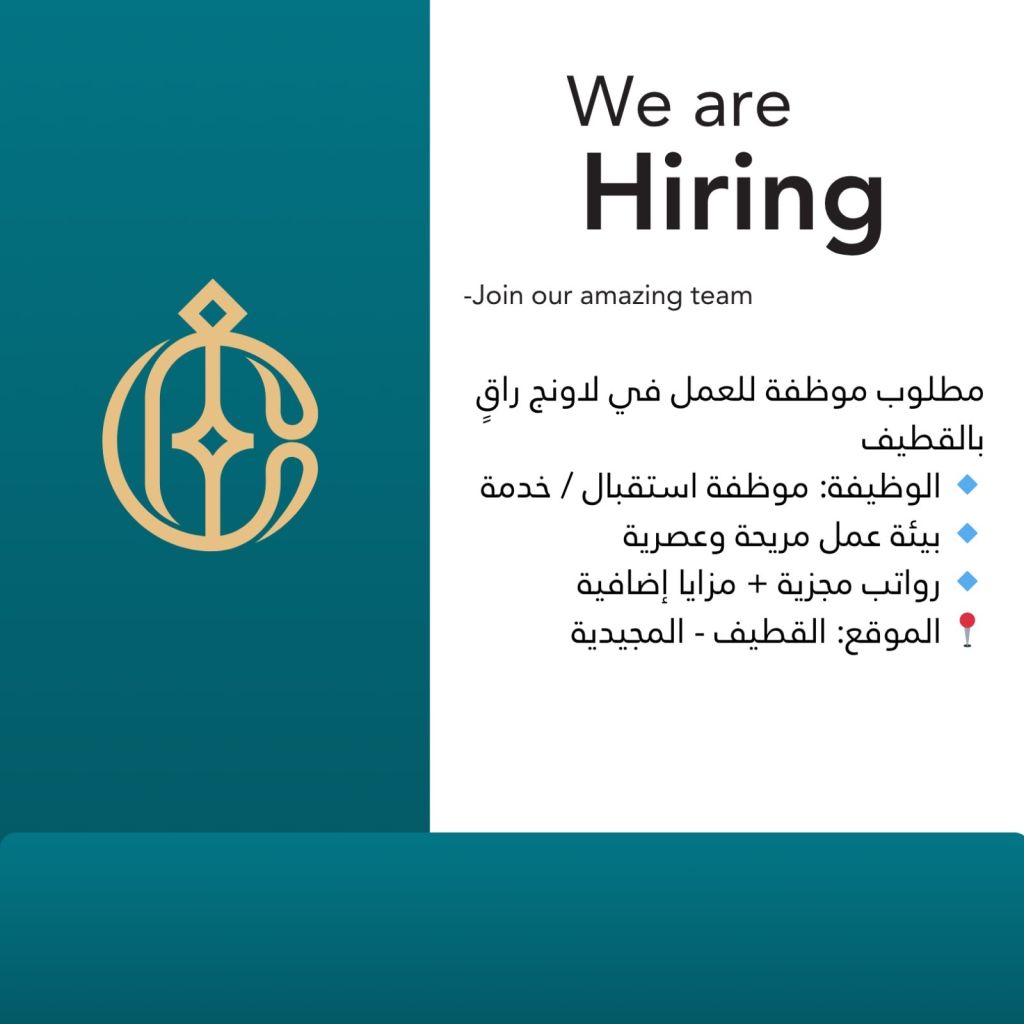 مطلوب موظفة للعمل في لاونج راق في القطيف الوظيفة موظفة استقبال / خدمة بيئة عمل مريحة وعصرية رواتب مجزية + مزايا اضافية الموقع المنطقة الشرقية - القطيف - المجيدية - شارع الخليج