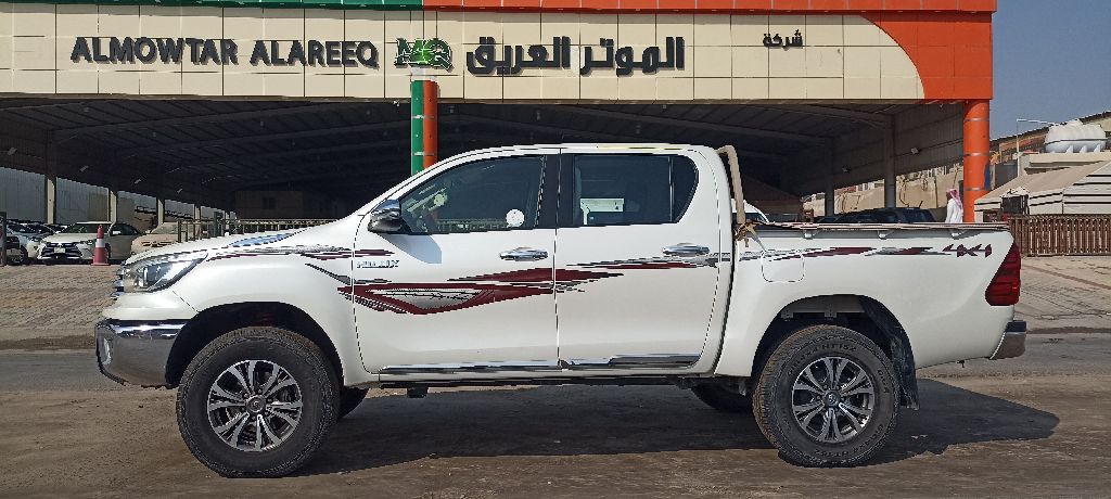 Toyota Hilux Double Cabin, gasoline, full options, automatic, model 2019, mileage 159,000 km, price 75,000 SAR. Engine, transmission, and chassis are in good condition. The vehicle is not agency-maintained except for the hood and front and rear right fender (cosmetic spray without putty). Contact via WhatsApp or phone call.