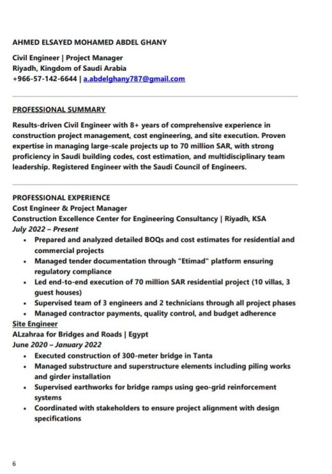 مهندس مدني مدير مشروع خبرة 8 سنوات في أعمال العظم والتشطيبات والتسعير وحصر الكميات وعلي دراية برفع المنافسات علي منصة اعتماد الحكومية مع الالمام بأعمال الالكتروميكانيك وخبرة في برامج المايكروسوفت أوفيس والاوتوكاد والريفت وأعمال الجداول الزمنية