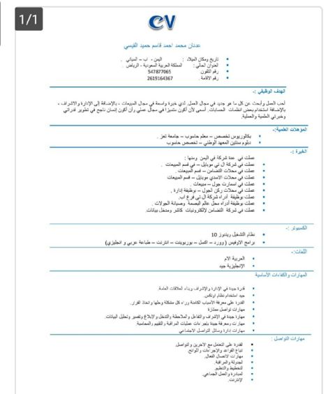 السيرة الذاتية الاسم الكامل شوقي محمد علي صغير قفل الجنسية يمني رقم الجوال 0505709820 رقم الجوال واتساب 0575083932 الإقامة سارية الموقع المملكة العربية السعودية. الهدف المهني باحث عن فرصة عمل في مجال التدريس خدمة العملاء، الاستقبال، الكاشير أو ادخال البيانات، أسعى لتوظيف مهاراتي في التواصل، سرعة التعلم، وتنظيم الوقت لتقديم قيمة مضافة للشركة وتحقيق رضا العملاء. المؤهلات العلمية بك لغة انجليزي