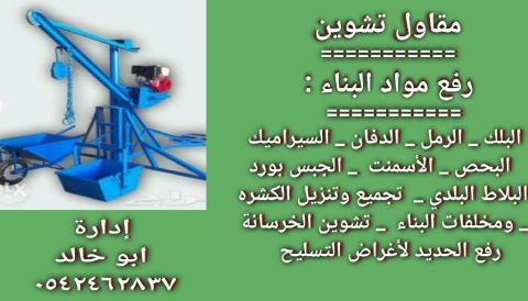 تشوين البلوك الرمل - الدفان - السيراميك - الاسمنت - الجبسون بورد البحص - الخرسانة - الزيرو - الأخشاب - حديد التسليح - تجميع وتنزيل الكشره ومخلفات البناء والتكسيرات