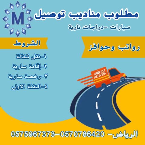 مطلوب مناديب لديهم الشروط رخصة قيادة دباب توفير الدباب للمندوب. الراتب 1800 ريال شهريا