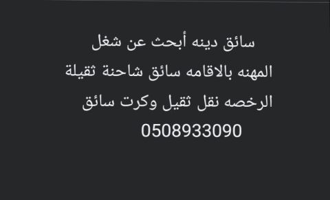 سائق، ابحث عن عمل الإقامة سائق شاحنة ثقيلة والرخصة نقل ثقيل وكرت سائق وعلي دراية تامة بجميع مناطق المملكة الجنسية مصري