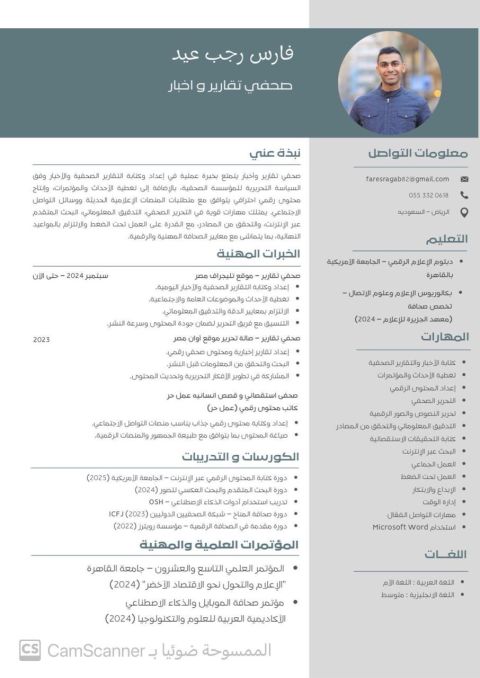 صحفي وكاتب محتوى خبرة 4 سنوات، بكالوريوس اعلام وعلوم الاتصال، دبلومة الاعلام الرقمي في الجامعة الأمريكية، عملت في مواقع صحفية الكترونية وابحث عن وظيفة، مقيم في الرياض وعندي إقامة سنة