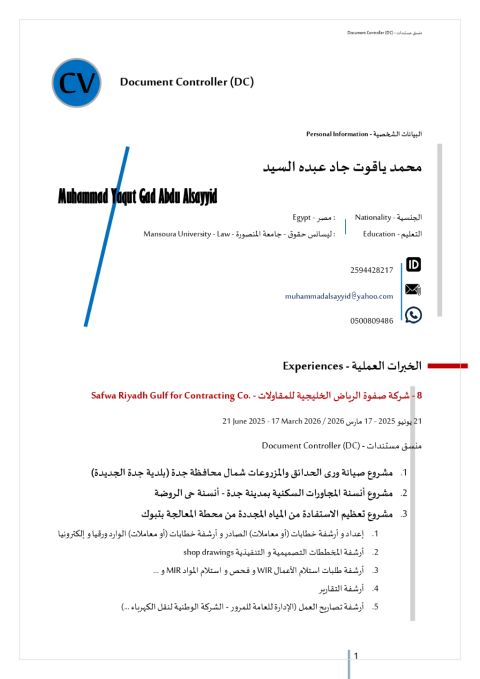 ابحث عن عمل منسق مستندات Document Controller (DC) في شركة مقاولات للتواصل والاطلاع على السيرة الذاتية يرجى ارسال رسالة بالواتساب