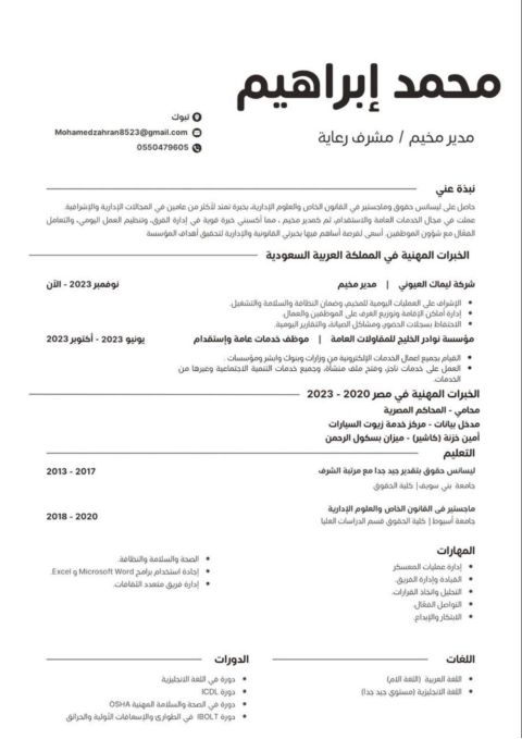 Holder of a Bachelor’s degree in Law and a Master’s degree in Private Law and Administrative Sciences. Over two years of experience in administrative and supervisory roles, including General Services and Recruitment, followed by working as a Camp Boss. Skilled in team management, daily operations coordination, and employee relations. Seeking an opportunity to contribute my legal and administrative
