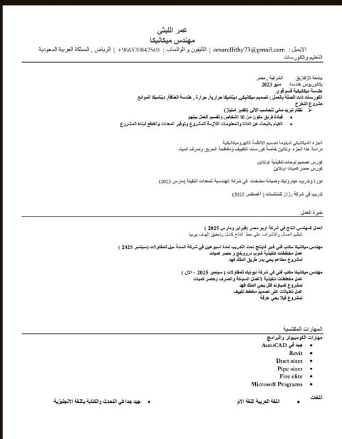 مهندس ميكانيكا مصري حديث تخرج وخبرة 3 شهور في مجال الصحي ابحث عن فرصة للعمل في مجال الفاير فايتنج أو تكييف أو صحي تصميم أو مكتب فني أو موقع