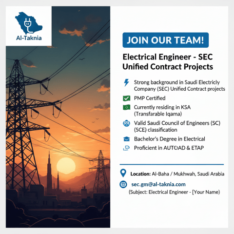 مطللوب مهندس كهرباء في حي الحمراء بكالوريوس هندسة كهربائية. خبرة من 2 الى 3 سنوات في مشاريع انشائية / MEP. معرفة جيدة بأعمال التمديدات الكهربائية، اللوحات، الانارة، أنظمة القوى. القدرة على قراءة المخططات وحصر الكميات واعداد التقارير. اجادة استخدام AutoCAD وMS Office