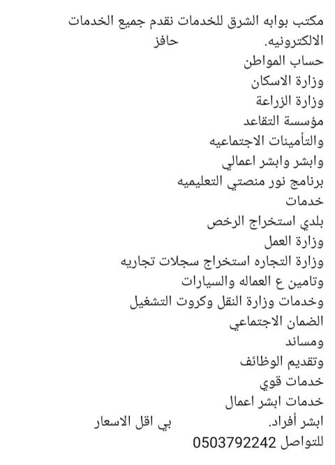 نستقبل الآن جميع الخدمات العامة (الجوازات - مكتب العمل - البلدية - وزارة التجارة - الزكاة والدخل)