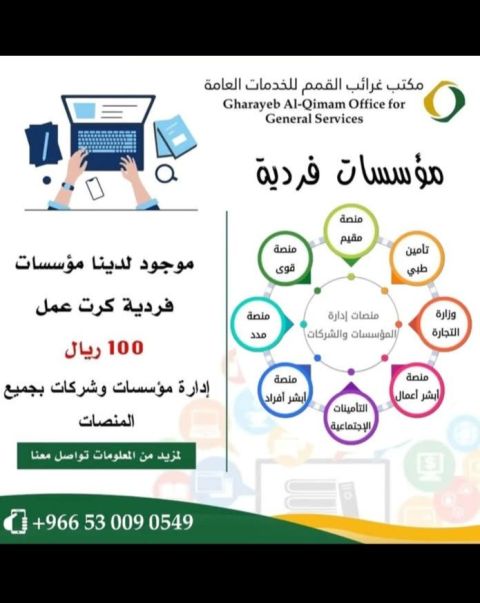 All electronic public services. In addition to designing online advertising services we offer you all electronic marketing services on all platforms. Facebook ads, Instagram, Tik Tok, Snapchat, Google, YouTube, Twitter, Haraj, the market is open, 4 sale, advertising services, photo design, logo design, video (regular, motion graphics, animation) Increase followers or increase the interaction of