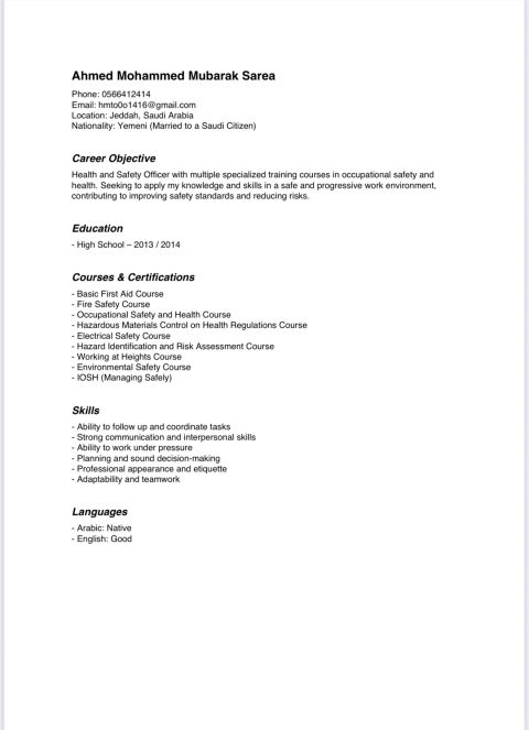 مراقب أمن وسلامة ابحث عن عمل في جدة للتواصل