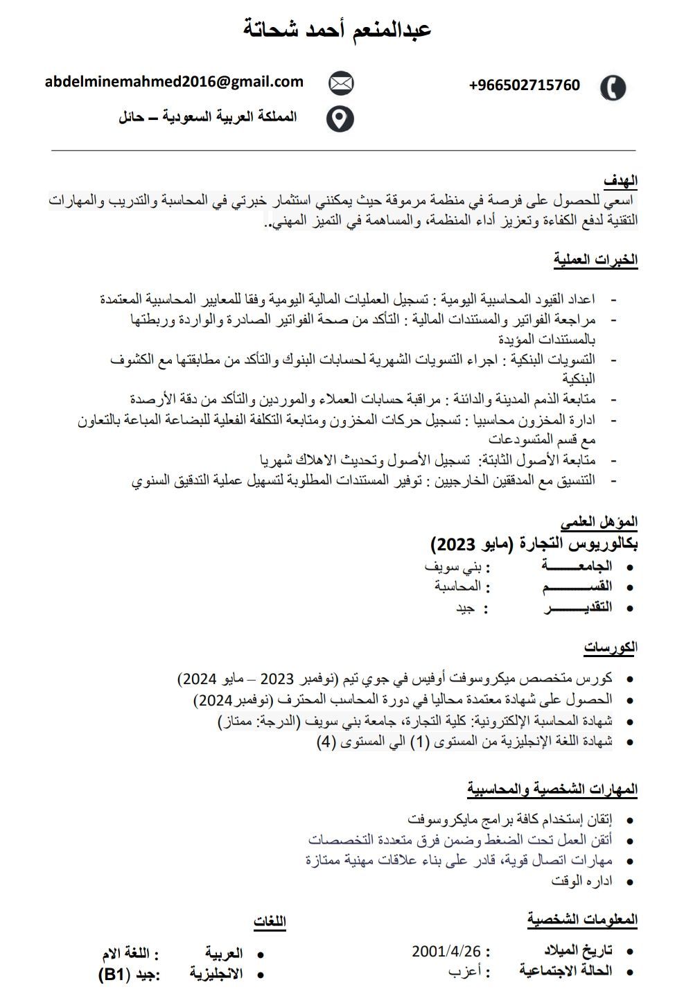 محاسب مالي مصري مقيم في حائل، ابحث عن عمل دوام كامل