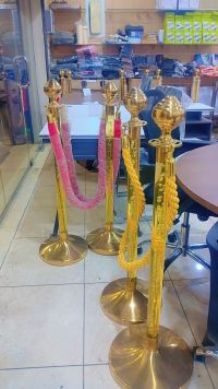 متوفر للبيع كمية من حواجز التنظيم الفاخرة، مثالية للفنادق، قاعات المناسبات، والمعارض الكبرى. التصميم عمود ذهبي عصري مع أنبوب كريستالي وحبل مجدول عالي المتانة. المميزات سهولة النقل والتركيب، مظهر أنيق جدا، وقاعدة ثابتة السعر 50 ريال سعر تصفية