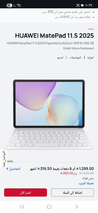 تابلت هواوي ميت باد 11.5 2025 نسخة ورقية مع الكيبورد والقلم. أشتريته قبل شهر وعجزت من الاقساط. عايز أبيعه على شان اكمل باقي الدفعات