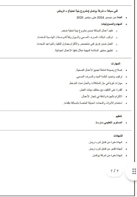 سباك مصري صيانة وبنية تحية بخبرة 7 سنوات في مجال الأعمال الصحية والبنية التحتية. قمت بالعمل بفنادق مجموعة جاز لمدة عام مسؤول صيانة عن أعمال التغذية والصرف وحمامات السباحة وقمت بالعمل بشركة يوكسال في مجال البنية التحية لمدة عام. ابحث عن عمل في مجال اختصاصي