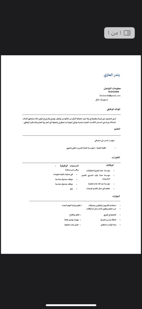 بدور على شغل في أي مجال مناسب لخبرتي. عندي خبرة في المبيعات وخدمة العملاء والتسويق الالكتروني وصناعة المحتوى. أعرف أستخدم برامج الكمبيوتر وفوتوشوب، وبأخذ مقاسات للعميل وبقترح أنسب تصميم للديكور. اشتغلت كمان اشراف انتاج وورشة. شخص ملتزم وسريع التعلم وجاهز ابدأ فورا