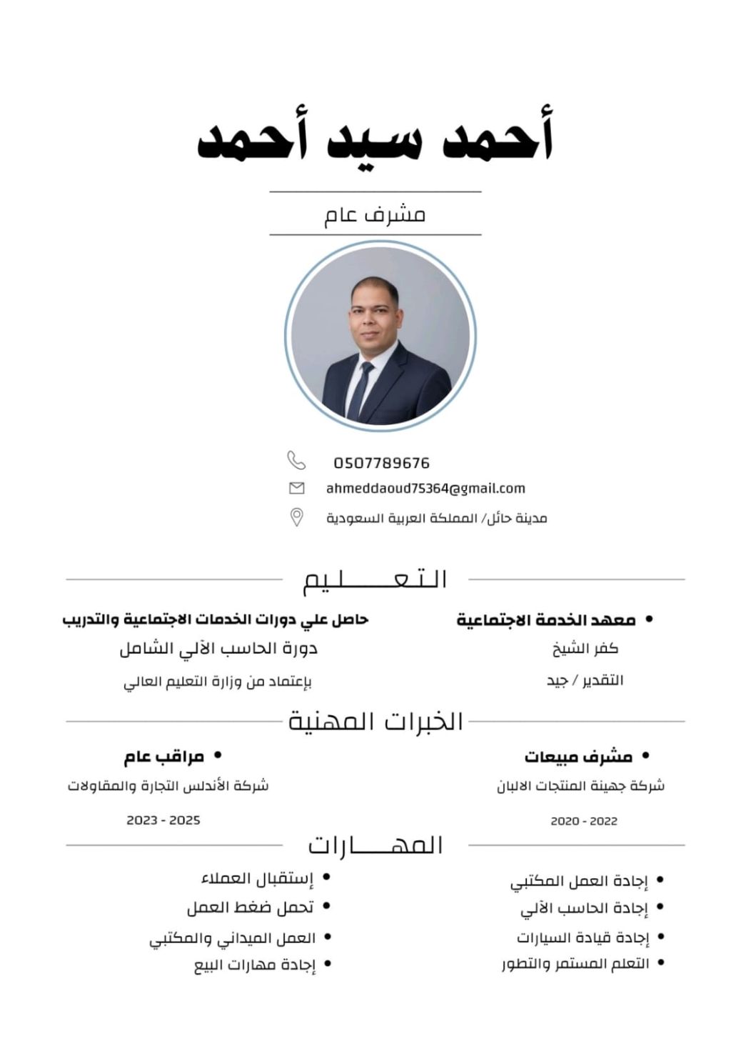 أنا متواجد في حائل وابحث عن عمل وجزاكم الله خير