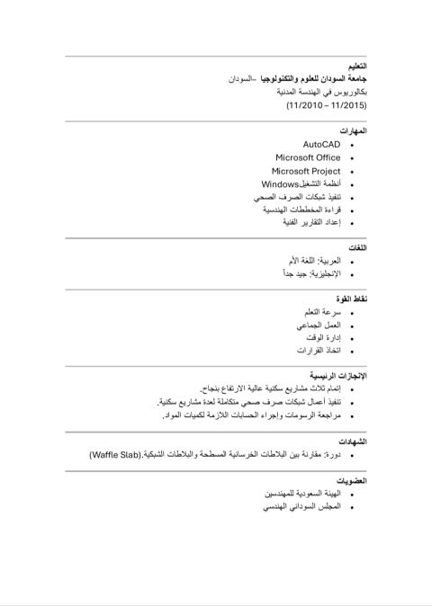 مهندس مدني خبرة 14 عام لدي الخبرة في تنفيذ وإدارة المشاريع الانشائية (فلل. عمارات. أبراج متعددة الطوابق. مستشفيات) متخصص في أعمال الهيكل الخرساني والتشطيبات وإدارة فرق العمل بالمواقع وأعمال التطوير العقاري. لدي خبرة قوية في متابعة الجداول الزمنية وضبط الجودة وتقليل التكاليف مع الحفاظ على أعلى معايير السلامة المهنية واعمل بكفاءة علي البرامج الهندسيه اوتوكاد وريفيت وبرامج ادارة المشاريع MS Project