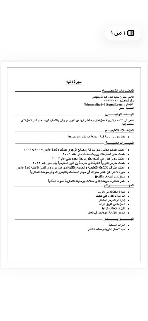 أنا فني رسم ونحت ونقش با اليد ومجسمات ودهانات داخليه خبرة 12 سنة حاصل على بكالوريوس تربية فنية أجيد السواقة فئة A B عملت لمدة 12 سنة دهانات، 5 سنوات مدرب فنية، مصمم أزياء بحث عن فرصة عمل ممتازة تتناسب مع قدراتي الجنسية يمني، متواجد في جدة مستعد لأقرب فرصة عمل