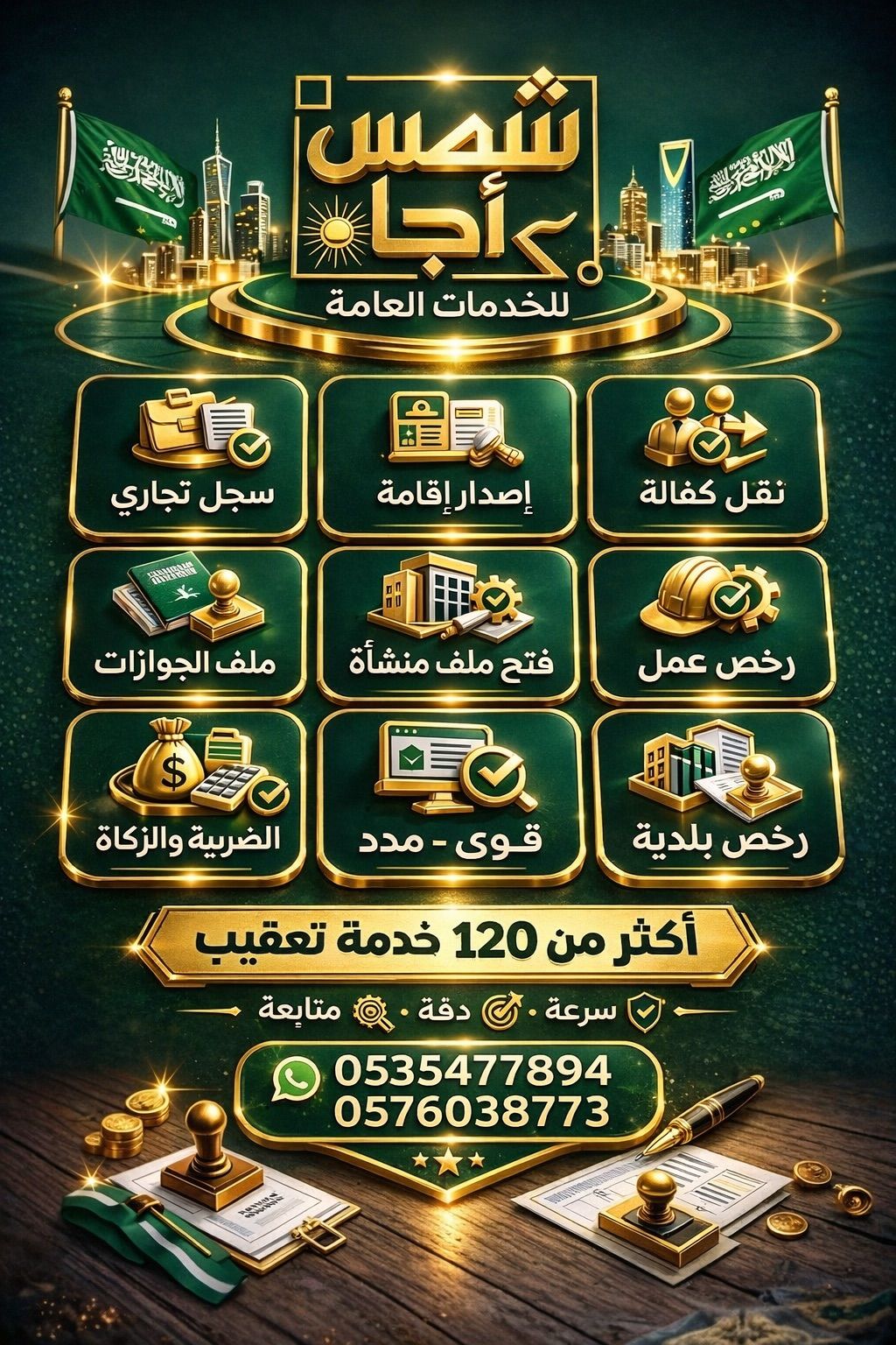 شمس أجا للخدمات - نقل كفالة - اصدار تأشيرات - خدمات مكتب العمل والجوازات متخصصين في انجاز المعاملات الحكومية للأفراد والشركات في السعودية. تشمل الخدمات نقل كفالة العمالة، اصدار التأشيرات، معاملات مكتب العمل، خدمات الجوازات، معاملات منصة قوى، انهاء معاملات الشركات والمؤسسات، متابعة الطلبات الحكومية واجراءات التعقيب. تنفيذ المعاملات وفق الأنظمة والتعليمات المعتمدة
