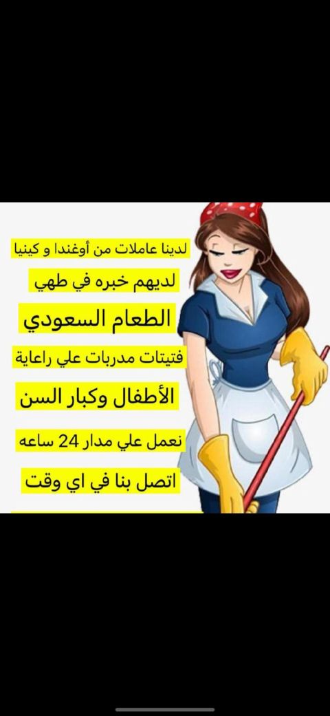يوجد لدينا عاملات منزلية ورعاية الكبار وصغار واعطاء العلاج لكل من يعاني من عنا. والاهتمام بذي الاحتياجات الخاصة واجادة النظافة بدقة واجادة الطبخ والتدقيق بكل ما يخص حاجات البيت والاهتمام به واجادة جميع اللغات والعربية. الدمام. الرياض. جدة