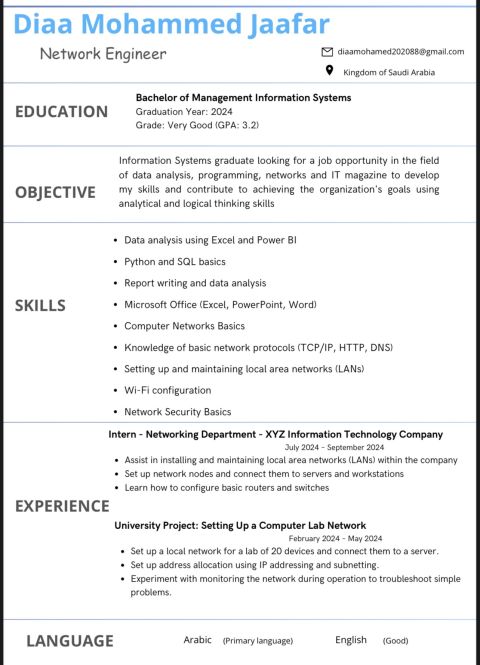 أنا ضياء شاب مصري حديث التخرج ابحث عن فرصة عمل في أي مجال أنا اشتغل فني شبكات واشتغلت موظف مبيعات في الأقمشة والنسيج واشتغلت موظف مبيعات الملابس
