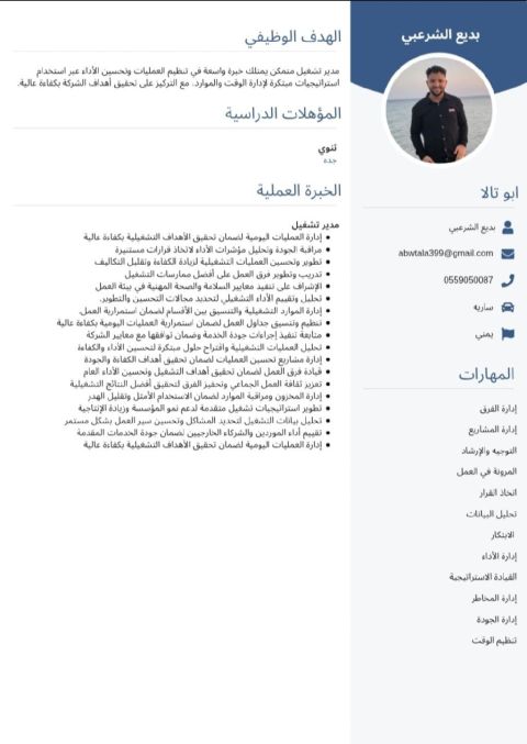 مندوب مبيعات ومدير تشغيلي يجيد اللباقة بالكلام وأسلوب الاقناع وعمل خطط استراتيجيه للعمل وكسب العملاء والمحافظة عليهم. لديه إقامة ورخصة سارية العمر 26 والجنسية يمني
