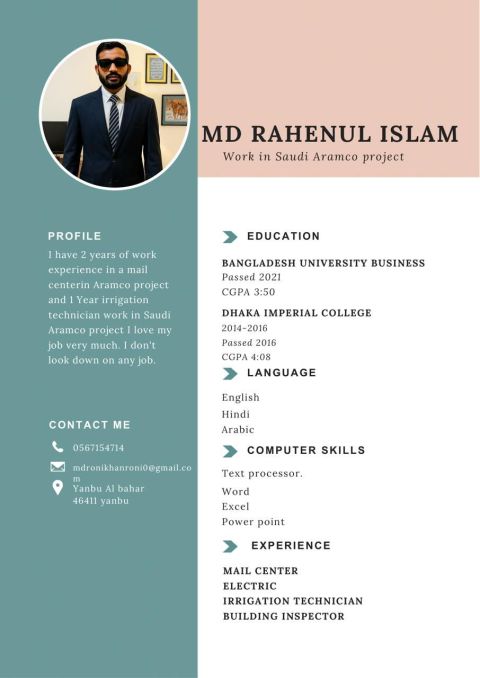 The company I work for is Aramco Incorporated. I don't consider any job small. I like my job a lot. I have 2 years of computer experience and 1 years of experience as a building inspector