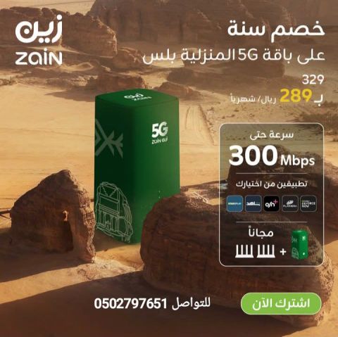 عروض زين 5G 1 - عرض 239 شامل الضريبة السرعة 100 ميجا بت الانترنت مفتوح بدون سياسة الاستخدام العادل خصم لمدة سنة 229 ريال بدل من 239 المودم والتركيب مجانا (أحدث اصدار) المقدم 229 ريال، مسترد بالكامل. الشهر الرابع مجانا) 2 - عرض 299 شامل الضريبة السرعة مفتوحة الانترنت مفتوح بدون سياسة الاستخدام العادل الشريحة تعمل على الجوال، المواقع مفتوحة المودم والتركيب مجانا