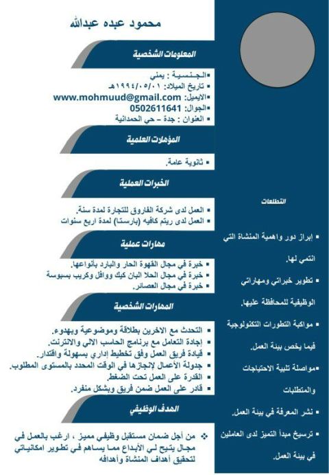 مدير تشغيل مطاعم خبرة أكثر من 12 عام في ادارة وتشغيل المطاعم ادارة التشغيل ادارة الانتاج ادارة التكاليف الادارة الماليه ادارة الجودة والمخزون والمشتريات وضع رزبيشن ووضع خطط للادارة التوسعية للفروع والعلامات التجارية والفروع الخارجية