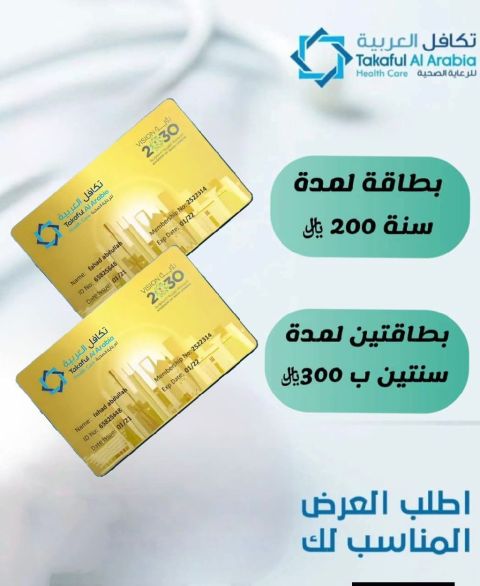 بطاقة تكافل العربية للرعاية الطبية بطاقة تكافل العربية أقوى بطاقة خصم طبي في المملكة بطاقة تكافل العربية هي عبارة عن بطاقة خصومات طبية للمستشفيات والمستوصفات والصيدليات وفر تكاليف علاجك في المستشفيات والمستوصفات والصيدليات والعيادات والمراكز الطبية نسبة الخصم تبدأ من 20% تصل الى 60% عروض تكافل العربية العرض الأول بطاقة لشخص واحد لمدة سنة ب 200 ريال العرض الثاني بطاقتين لشخصين لمدة سنتين ب 300