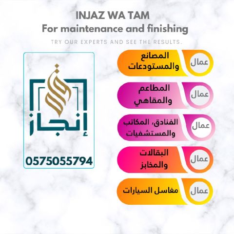 لدينا العديد من عمال للعمل داخل المملكة العربية السعودية، فنادق تنظيف مكاتب مغاسل سيارات مصانع أسواق إنشاءات كهرباء سباكة لحام، وجميع أعمال النظافة، جميع العمال جدد