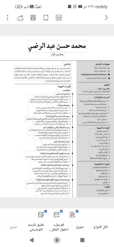 ابحث عن فرصة عمل مناسبة - مدير مالي محترف، ومحاسب قانوني، خبرة أكثر من 24 سنة، وحاصل على شهادة مستشار زكوي وضريبي CMA Part 1 - Data analyses - SOCPA - PFA - IFRS - CFO خبرة كبيرة في تنظيم الحسابات، واعداد الميزانيات، والتقارير المالية، واعداد وفحص اقرارات ضريبة القيمة المضافة، وتمويل الشركات، واعداد دراسات جدوى احترافية للمشاريع الجديدة، وتقييم المشاريع القائمة، دراسات عليا في المحاسبة
