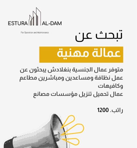 موجود عمال بنقال للتنازل الفوري جاهزة للعمل بالمطاعم والكافيهات والمصانع والمولات شكل مقبول وصغار بالعمر وإقامة سارية مع التجربة أسبوع رواتب تبدأ من 1200 وامكانية استبدال أي عامل خلال فترة التجربة