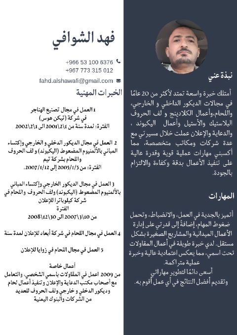 أنا فني ديكورات كلادينج وحروف ولحام ابحث عن عمل