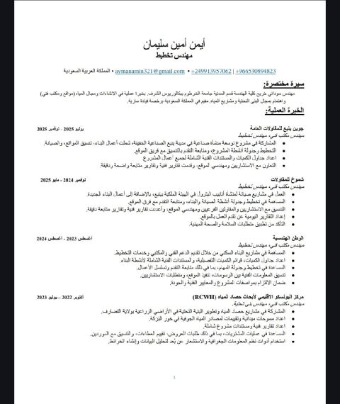 حاصل على اعتماد الهيئة السعودية للمهندسين، وأحمل إقامة سارية، وجاهز للعمل الفوري داخل المملكة. لدي خبرة عملية في مشاريع كبرى مع شركات رائدة، وأتميز بالدقة في التنفيذ والاشراف الفني وضمان الجودة
