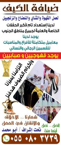 قهوجي محترف، صبابين وصبابات بخبرة في التعامل، حضور راق، وتقديم ولا أروع زواجات ملكات اجتماعات رسمية مناسبات خاصة وعائلية نخدمك بأسلوب يليق بك