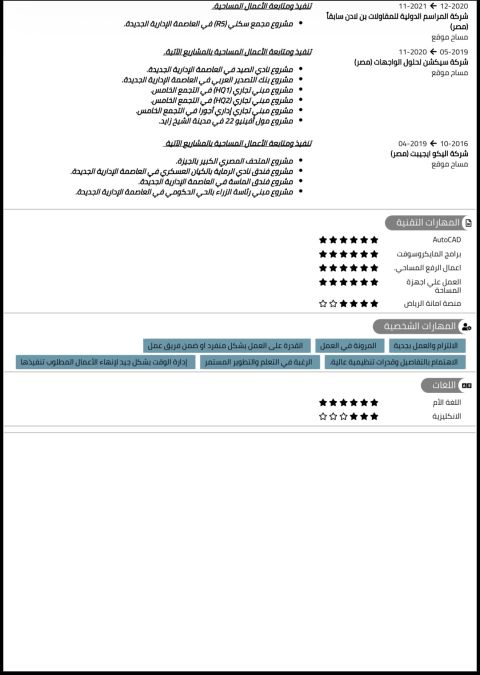 مساح بخبرة عملية تتجاوز 9 سنوات في مجال الأعمال المساحية والرفع المساحي، سواء ضمن مواقع المشاريع أو داخل المكاتب الهندسية خلال مسيرتي المهنية شاركت في تنفيذ مشاريع التركيبات والإنشاءات وأشرفت اشرافا كاملا على الأعمال المساحية ومتابعتها بالتنسيق الدائم مع الفريق أتمتع بمهارات استخدام الاجهزة مثل GPS، Total Station، والميزان، AutoCAD يوجد اعتماد الهيئة السعودية متاح نقل كفالة والعمل في أي مكان بالمملكة