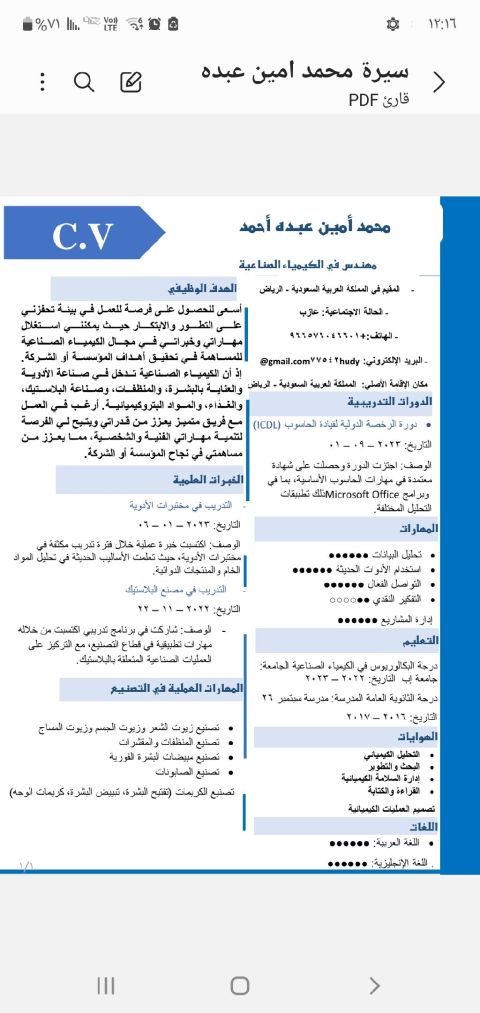 الاسم محمد حزام الجنسية اليمن العمر 45 سنة خبرة في مجال المبيعات فترة تجاوزت 25 سنة منها 10 سنوات في السوق السعودي عملت سابقا مسؤول فرع فوق 5 سنوات في مجال الانارة (LED) ومجالات وأنشطة أخرى في المبيعات عملت أيضا في مجال المشتريات أنشطة المقاولات والنقل المباشر المشتقات النفطية اشراف مباشر على عمليات الشراء والمتابعة أيضا عملت مساعد مدير ومشرف في مجال أنشطة المطاعم اشراف كامل تشغيل ضمن معايير السلامة